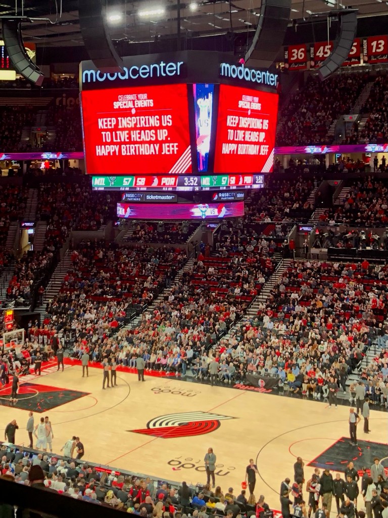Special thanks to Live Heads Up and Filigree Wealth Advisors, who teamed up with Portland Trailblazers and Blazer legends including Chris Dudley, Terry Porter and Steve Johnson to help celebrate the greatness that is Coach Jeff Young. Jeff was recognized on the big screen and was presented with a personalized Trailblazer Jersey. The number 48 is a reflection of his slogan with the Lake Oswego Lakers Football program – LO48 – as a reminder to live your best life and do your best every minute of the 48 minutes in a football game. Jeff became an ambassador for Live Heads Up in 2023, where they promote the benefits of living your best life when you “Live Heads Up” in your thoughts and actions.